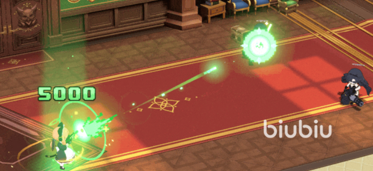 辅助技能“刷新最高分”在释放必杀技时触发,可在短时间内提高自身的暴击数值,增强爆发伤害的稳定性。而她的必杀技“赛博女仆射击”则会进入一段特殊的射击小游戏画面,随后对单个敌方目标造成基于自身攻击力的高额伤害,视觉表现力强且输出集中。