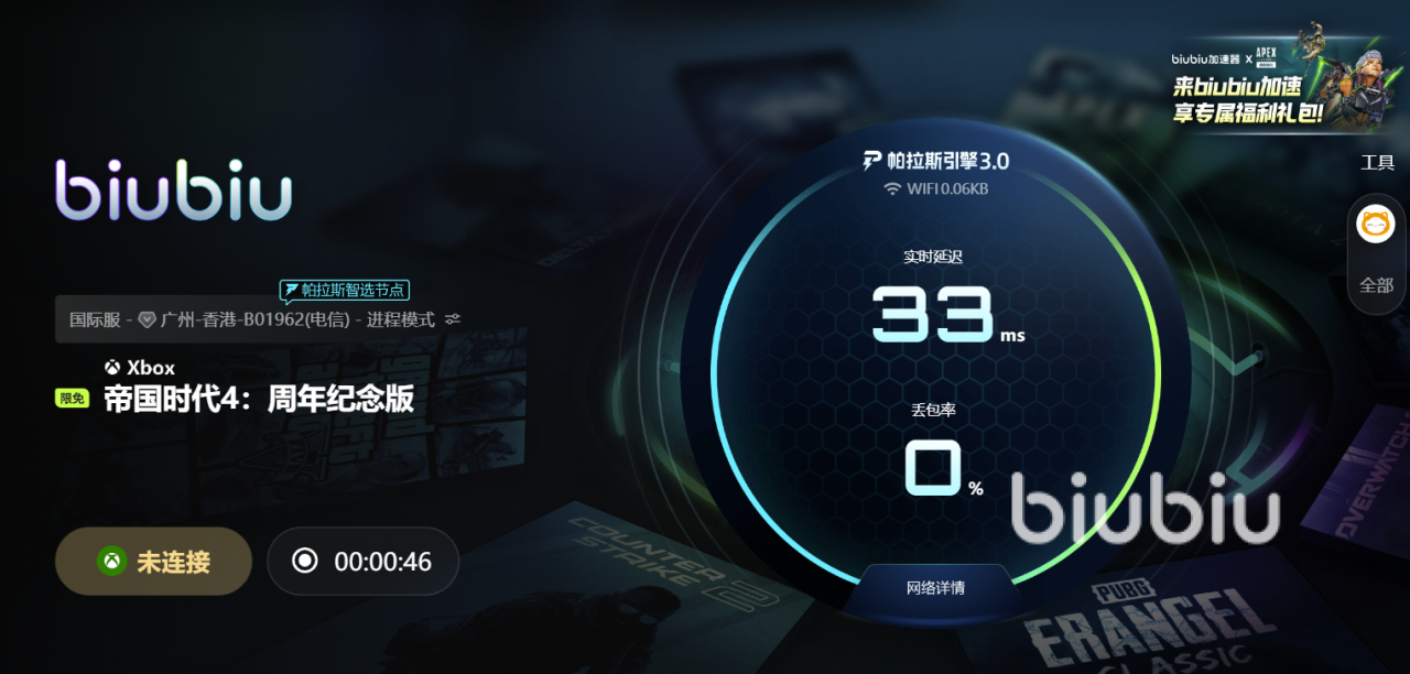为了能够帮助大家快速的解决这个网络干扰问题,biubiu软件提供了高效稳定的解决方案。在智能节点的调度和专属加速通道,能够更为高效的降低延迟和卡顿,丢包等问题。成功的避免因网络异常导致的黑屏或加载失败。当启动了加速工具之后,角色在攻城略地、协同作战或进行大规模战役时,都能获得更流畅、更可靠的连接体验,保证每一次战略部署都能顺利执行,不再因技术问题错失决胜时机。