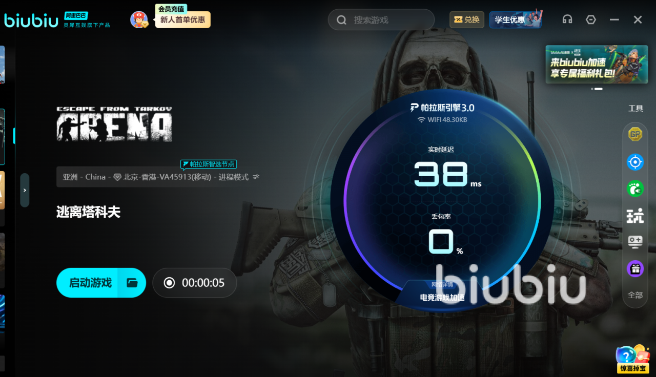要彻底解决网络问题,需要选择一款专业工具才能稳健提速。biubiu加速器正是你的绝佳伙伴。它针对塔科夫的服务器节点进行了深度优化,搭载的全新升级版帕拉斯3.0引擎,能智能选择最低延迟、最稳定的线路,有效解决因网络波动导致的卡顿、掉线和连接中断问题。而且通过其全球部署的加速节点,能显著降低游戏数据传输的延迟,让你在紧张的对抗中抢占先机,操作响应更快人一步。