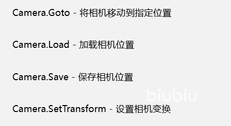关于相机的指令代码也很多,使用【Camera.Load】可加载相机位置,而【Camera.Save】是保存相机位置,想要将相机移动到指定位置,使用【Camera.Goto】就行了。