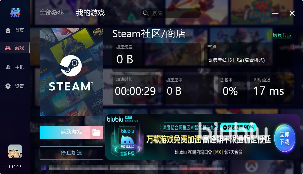 想要得到免费使用时间,也极为容易,抓紧下载客户端,完成注册等步骤。在首次登录的时候,就会有新人专属的礼包,里面会送给大家免费的24小时服务时间。光送这点biu仔自己都不满意,现在有兑换活动开展,不管是新老用户,其实都能拿【biubiu不掉线】在首页换到额外的加速时间,又能多拿72小时,加一起之后,等于新人可以用上的服务时间有96小时了。使用之后,游戏爱好者们又可以享受优质加速环境,畅玩海量游戏。