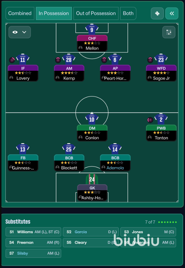 2、动态转换的4-3-3:由CairozinhoXx设计的此战术,在持球时转变为3-5-2阵型以创造中场人数优势,无球时则迅速回撤为紧凑的4-3-3进行高位压迫。团队指令通常设置为高位逼抢、短传配合与快速反击。