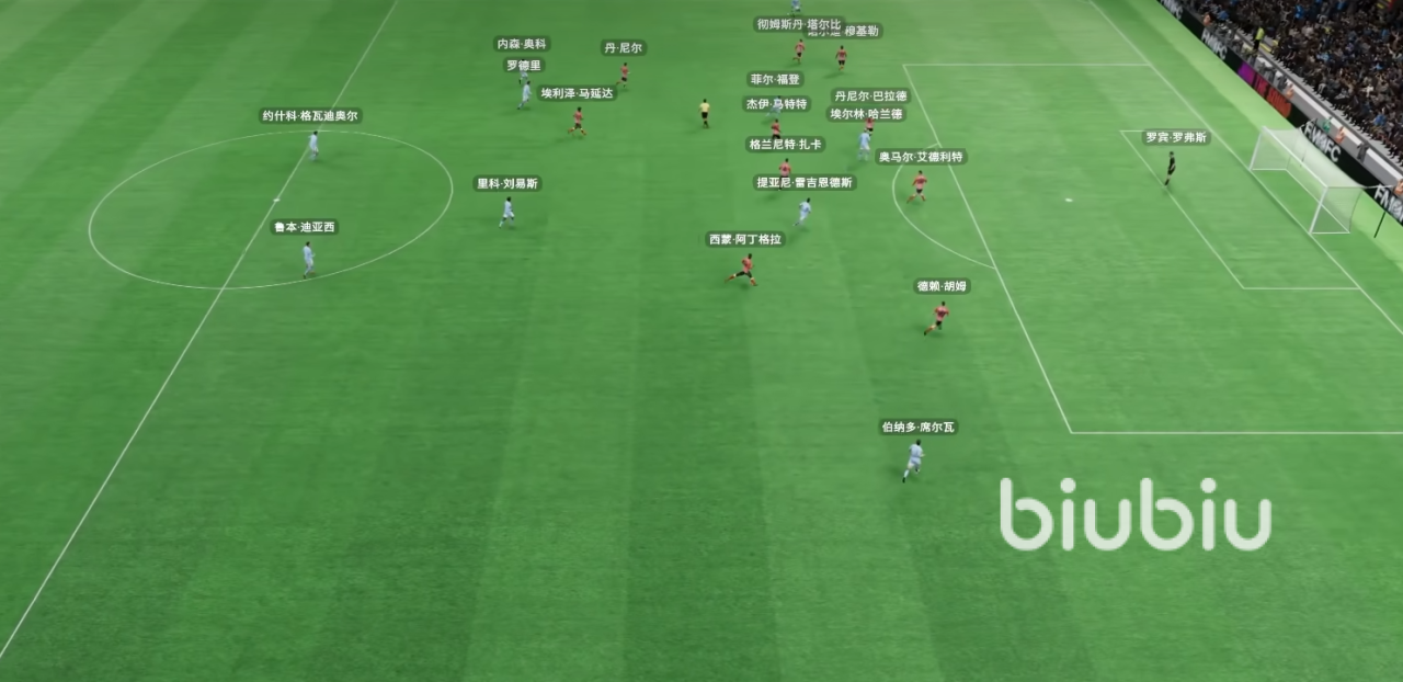 4、稳固的4-1-4-1 防守反击:这是一个验证过的非常有效的防守战术。持球时呈4-1-4-1阵型,注重快速短传和反击;无球时则转换为由两名防守中场支撑的4-4-2阵型,在中场区域构筑坚固防线,其设计目标是迫使对手犯错并高效利用反击机会。