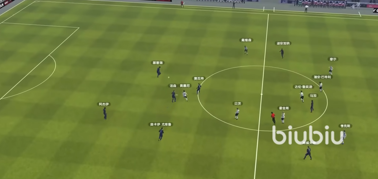 无球视图:展示球队在防守状态下的阵型结构。
