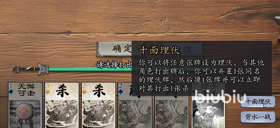 失去全部闪避手段后,项羽的生存能力大幅下降。此时可连续使用“杀”对其造成伤害,逐步削减其生命值。当血量降至2点时,再次释放一张“十面埋伏”,由于其手中已无闪牌可用,必定受到额外一次伤害。