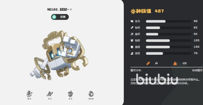 权杖的生命值为86,魔法防御高达105,物理防御也处于较高水平,这使得它在机械属性精灵中成为优秀的承伤单位。面对以魔法或物理输出为主的对手时,都能有效站场。速度值为75,属于中等偏下水平,不影响其功能性定位。攻击端方面,62点物攻和54点魔攻表明其更倾向于物理输出路径。此外,每次切换技能位置后,对应技能消耗减少1点能量,该被动特性极大优化了技能循环效率,配合多段释放机制可实现持续作战。