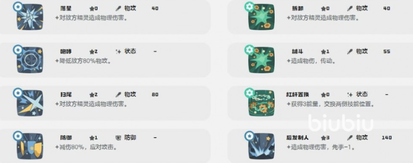 “齿轮切开”拥有145威力,不仅能打出高额物理伤害,还能恢复自身约25%的生命值;若目标处于防御状态,回血效果可提升至80%,显著增强续航能力。“齿轮扭矩”初始威力为40,但每更换一次技能顺序便增加30点威力,在多次调整后能形成极高爆发输出。搭配能耗减免机制,可在后期快速累积伤害。“后发制人”则提供140威力的高斩杀输出,适合清理残血敌人,补足团队终结能力。