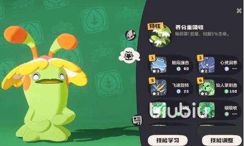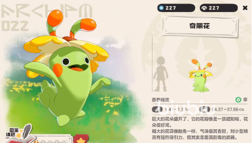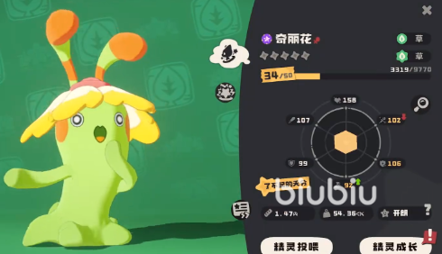 从属性克制关系来看,草系对水系和土系具有天然优势,面对这两类对手时能打出有效压制。但需注意的是,火系与飞行系技能会对奇丽花造成更高伤害,应尽量避免正面硬拼。基础面板方面,其生命值与物攻数值较为突出,适合承担前排输出或半肉战士角色。然而速度偏慢、物防薄弱是其明显短板。不过这些不足会随着等级成长逐步改善,尤其在中后期属性全面提升后表现更为稳定。关键机制在于“吸收”特性——每获取一点能量即可恢复自身5%的生命值,这使得它在持久战中具备极强的续航能力。