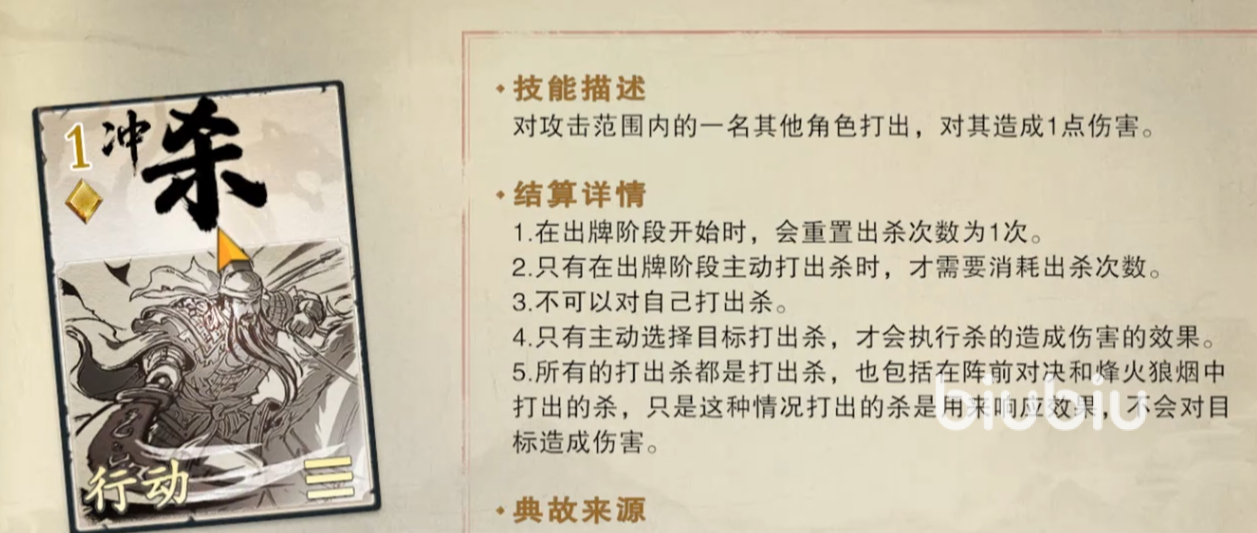 部分角色具备强化手牌的能力,但该机制对卡牌的属性与点数有特定限制。目前可被强化的卡牌类型包括行动牌与装备牌。接下来重点解析行动牌,这也是新手最常咨询的内容。当前游戏中共有四种基础行动牌:杀、桃、闪、易。其中,“杀”全称为冲杀,成功使用后可对目标造成1点伤害。通常情况下,每回合仅允许主动使用一次杀。
