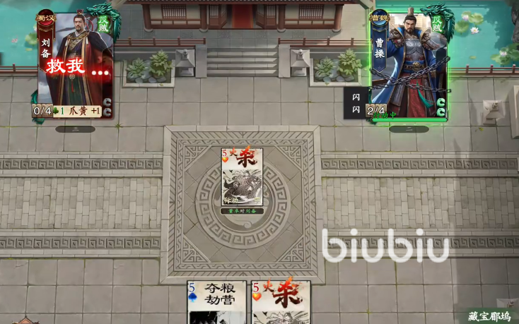第57关注重火属性攻击与生存维持之间的平衡。开局使用黄忠的“调兵遣将”锁定张辽,触发火杀反伤机制。为防止血量过低,应及时将“易”牌当作桃使用以恢复体力。在黄忠生命值危急时,保留一次反击机会,将“易”牌转为“杀”牌,直接对张辽发动终结打击,实现逆转取胜。