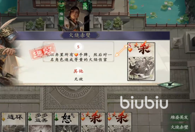 第59关以火系输出为核心战术。起手对刘备施放“烈火焚城”,并主动弃掉“闪”牌完成伤害结算,使其体力降至1点。接着弃置“铁索连舟”牌以抽取一张“火杀”,最后用该火杀对刘备造成致命一击,顺利结束战斗。此关强调牌序控制与火属性连招衔接。