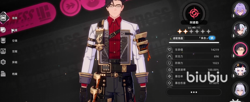 另一位值得关注的是阿德勒,他是一名以咒系为核心的护盾提供者。其主要功能是为全队施加防护护盾,若搭配具有系念属性的弧盘,尤其适合与雨人体系配合使用,能进一步强化护盾强度。配合特定卡带装备后,还可提升对队友的护盾量以及整体攻击力。其E技能可为全队提供基于防御倍率的护盾保护,而大招则包含多段打击效果,在保障输出的同时也增强了团队的安全性,适用场景广泛。