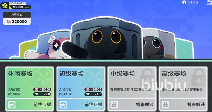 赛事共设四个难度层级:休闲赛场、初级赛场、中级赛场和高级赛场。不同层级对应不同的入场点心消耗量,难度越高所需投入越多,但相应的观赛积分回报也更为丰厚。玩家可根据自身资源储备选择合适的赛场进行应援,逐步累积积分还可解锁阶段性奖励。