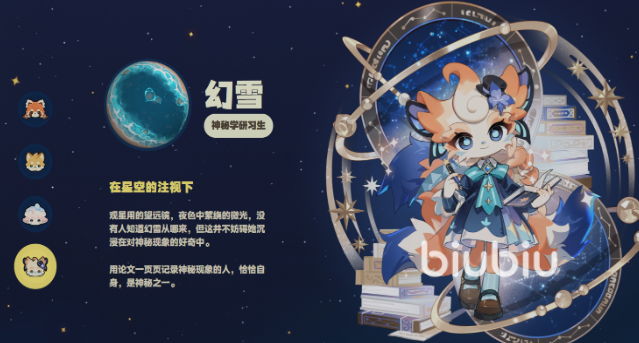 幻雪是一位神秘莫测的角色,原型为九尾狐,身份为神秘学研习师。关于他的来历无人知晓,随身携带的笔记本中记载着诸多与宇宙相关的未解之谜。每当有人提出难以解释的现象时,他总能耐心解答,并流露出对未知世界强烈的好奇心。跟随幻雪的脚步,玩家有机会揭开隐藏在游戏世界中的奇妙秘密,体验别具一格的探索乐趣。
