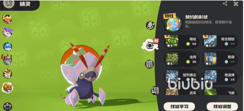 在属性成长方面,星辰之虫表现优异,具备较高的可塑性。其魔法防御资质高达74,魔法攻击与速度资质均处于中上水平,适合走输出路线或半肉辅助定位。加点推荐优先投入魔法攻击,以最大化伤害输出能力,尤其适用于纯虫系阵容中的主C角色。若选择辅助方向,可适量分配点数至防御属性。整体加点优先级为:魔法攻击 > 速度 > 魔法防护,不建议在非核心属性上过度投入资源。