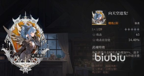 北洛的核心输出循环建立在“斗志”积累的基础上,该资源通过普攻、技能命中或连招衔接逐步获取,且具备可储存特性,允许玩家在关键时刻释放高爆发技能。他的专属武器“向天空出发”之所以强势,正是因为它深度融入了这一机制。相较于普通武器仅提供静态属性加成,“向天空出发”能在每次普攻或技能命中时额外增加斗志获取效率,有效缩短从常规输出到爆发阶段的准备时间,让大招释放更加频繁且可控。
