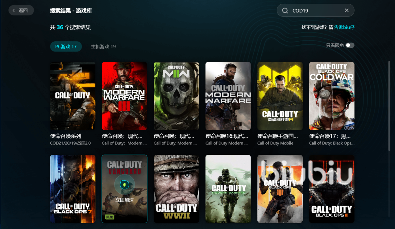 区服覆盖更是全面,无论是亚服、欧美服,还是东南亚服等热门服务器,都能一键切换适配,满足不同玩家的组队需求。操作上更是零门槛,PC端登录后搜索“COD19”,系统会自动匹配最优节点,点击“立即加速”即可启动,全程无需复杂设置!