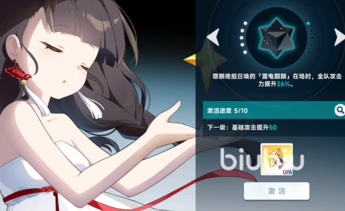 天赋的成长直接影响角色的核心能力。以“璟麟”为例,当其天赋升至第五阶段时,可强化召唤雷电麒麟使的效果,为全队提供攻击力增益,该增益倍率最高可达26%。进入第六阶段后,基础攻击倍率还将额外提升五十点,大幅增强输出潜力。