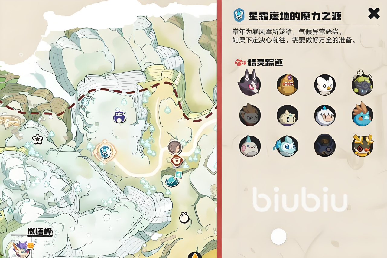 为了提高获取效率,这里分享一个高概率刷出异色精灵的地点——星霜崖地的魔力之源。此区域栖息着属性为电系与冰系的电企鹅,在此处重复捕捉操作时,粉星星、布鲁斯以及月牙雪熊的异色形态出现几率显著提升,是目前较为理想的刷取点位。