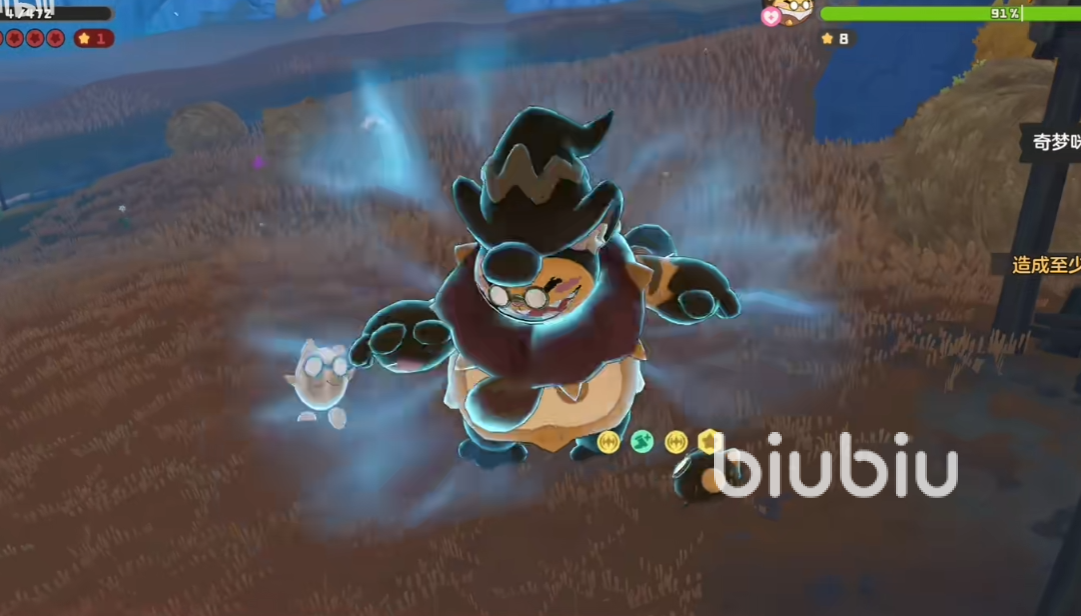 了解技能机制后,接下来便是应对策略。奇梦咪开局自带五层护盾,并处于空中状态,通过召唤小怪进行攻击。此阶段属于破盾期,推荐使用【星星魔法】直接打击本体或清除召唤物,逐步削减护盾值。当护盾被削弱到临界点时,奇梦咪将被迫落地,进入第二阶段——正面精灵对决。