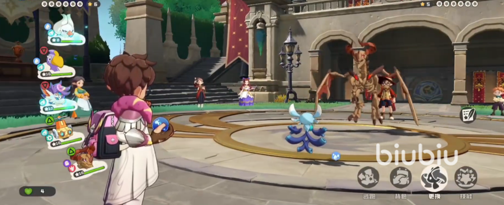 实战操作中,建议首发出场使用圆号鱼,开局立即释放湿润印记,确保团队能量供给充足。随后切换至圣羽翼王,依次施展热身运动、三鼓作气和乘胜追击,利用迅捷机制抢占行动先机,建立战场优势。