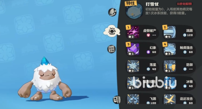 初始阶段,雪豆丁掌握如冰之砾、猛烈撞击等基础物理技能,操作简单且能稳定输出。随着等级提升,将逐步解锁更具战略意义的技能。例如冰之球可在多个回合内连续攻击,威力逐级递增;三角之力则附带概率性异常状态,可能使目标陷入麻痹、烧伤或冻结,有效打乱敌方部署。进入高阶后,践踏、吞噬、压扁等强力物攻技能也将开放,部分关键技能需消耗能量才能发挥最大效能。