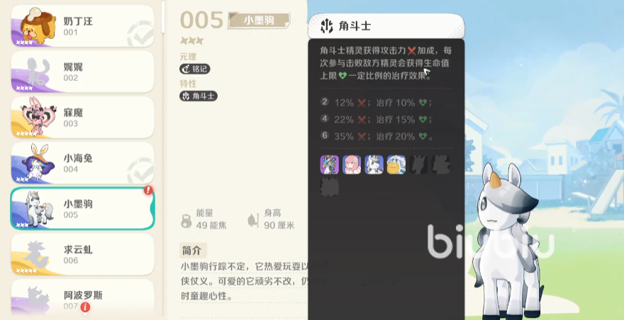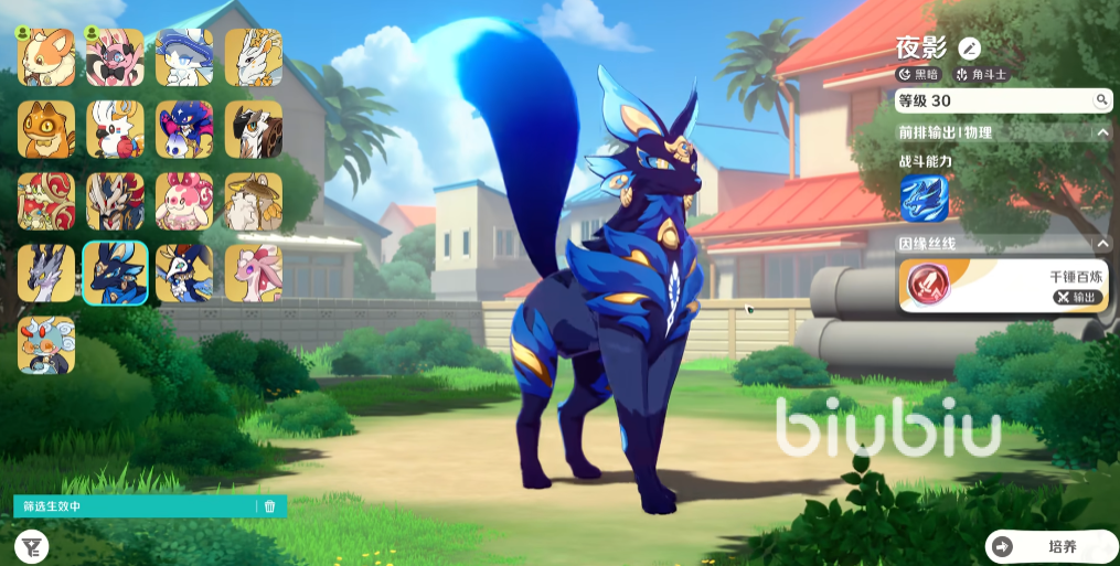 从外观设计来看,夜影整体形象酷似一只拥有蓬松大尾的灵狐,毛色以蓝紫与灰调交织呈现,造型优雅且充满神秘感。在游戏中,夜影归属于黑暗元理体系,其核心特性为“角斗士”,这一特质使其更适合作为前排输出单位参与战斗。由于其主要输出方式依赖物理攻击,因此在组队时需合理搭配阵容,确保元理共鸣与特性羁绊能够充分激活,从而发挥最大作战效能。