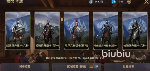基础建筑成型后,下一步是英雄培养。英雄可通过酒馆、城区、区域及世界招募获得,其中城市招募最为便捷,每日提供8次免费机会,且必定可获得至少四星品质英雄,运气好还能抽中五星角色。因此推荐优先使用城市招募功能,其他方式则视条件而定。