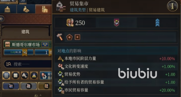 因此我们在建造市场等贸易类建筑的时候,需要把控数量,虽然多建造可以增加市场进出口贸易的次数,提高利润,但是过渡建造会让整个市场无利可图,同时维护成本剧增,从而造成亏损。这部分需要综合,辩证性的看待,合理安排。