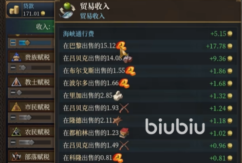 贸易收入来源也不少,我们可以在领域范围内开设各种市场,比如珠宝,农业,集市交易所等等。当民众在这里进行买卖行为的时候,就会产生一定的收入。另外外交资源足够充足的时候,也能向周边国家申请进行贸易,同样可得到收入。