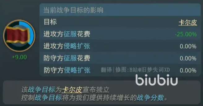 在拥有足够的兵力之后,向外扩装需要进行战争。正常的军事活动起始阶段就是进行宣战,我们需要找到合理利用,简称(CB),不然强行开战会增加侵略扩张,降低稳定度。