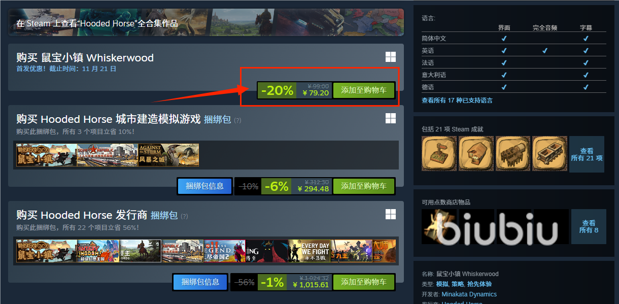 鼠宝小镇的价格属于99块钱的价位,在这个价位的游戏可以说是独立游戏的水平,并且类文明的游戏除去DLC价格都不是很高,也都是百元价位的水准,但是游戏的体量还是非常的大的,大家在游戏的时候常常要进行建筑升级交易等行为,有着非常多可以探索的游玩内容,其中交易玩法最为有趣,有着非常多的探索升级路线。