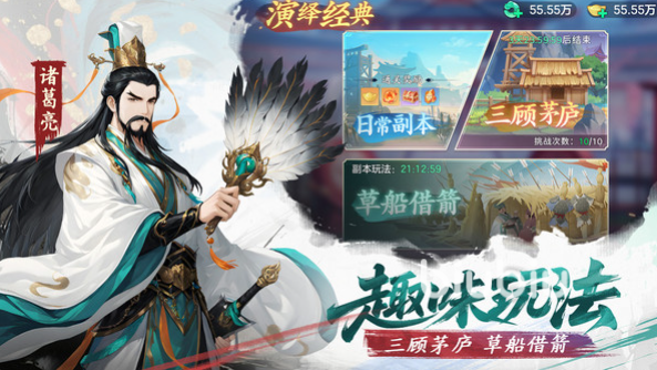 游戏主打轻量化设计,单局时长控制在5至10分钟之间,非常适合通勤途中或短暂休息时游玩。不仅运行流畅、不占内存,还能营造浓厚的三国氛围。每位武将的造型与技能均参考历史设定,如关羽的青龙偃月斩、诸葛亮的八卦阵,高度还原人物特色,增强代入感。游戏对新手及非付费玩家也十分友好,无强制内购机制,通过完成日常任务即可获得充足资源,逐步打造强力阵容。