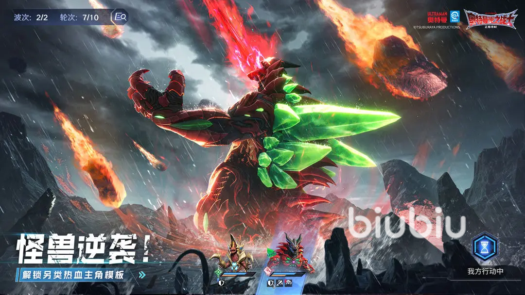 进入战斗后,玩家将在回合制框架下选择合适的技能进行释放。每个技能发动时都会触发专属动画特写,完整再现原剧中标志性的光线技释放过程,例如经典的“哉佩利敖光线”或“斯派修姆光线”。这种设计不仅增强了视觉冲击力,也让玩家仿佛置身于特摄剧现场,感受每一次决战的紧张与震撼。