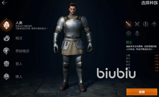 游戏中设有五大种族,各自对应不同的职业体系。其中人类种族以均衡性和易操作著称。骑士作为人类代表职业之一,擅长使用单手剑与盾牌组合,具备强大的防御能力和团队保护能力。通过优先提升体质属性,并配合嘲讽类技能,可在副本或团战中承担主坦职责,为队伍提供坚实保障。此外,人类斗士也是值得推荐的选择,力量与敏捷双修,无论是单人刷怪还是参与高强度挑战,都能展现出稳定的输出与生存能力。