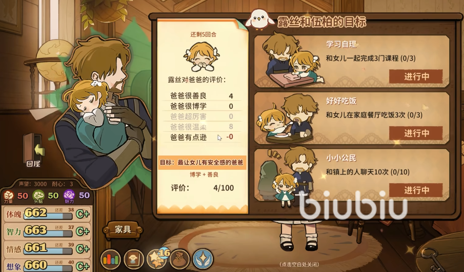 女儿的成长由四大核心属性构成:体魄、智力、情感与想象。这些属性可通过参与课程、外出打工或探索地图逐步提升。每项课程都会消耗体力值,因此安排日程时需权衡优先级。日常探索是成长的重要环节,绿洲森林与烈焰河等地不仅隐藏着未知挑战,还蕴藏丰富资源。其中,烈焰河的深海人鱼BOSS副本奖励尤为丰厚,有机会掉落高价值稀有材料,建议在体力充足的情况下多次挑战以获取最佳收益。