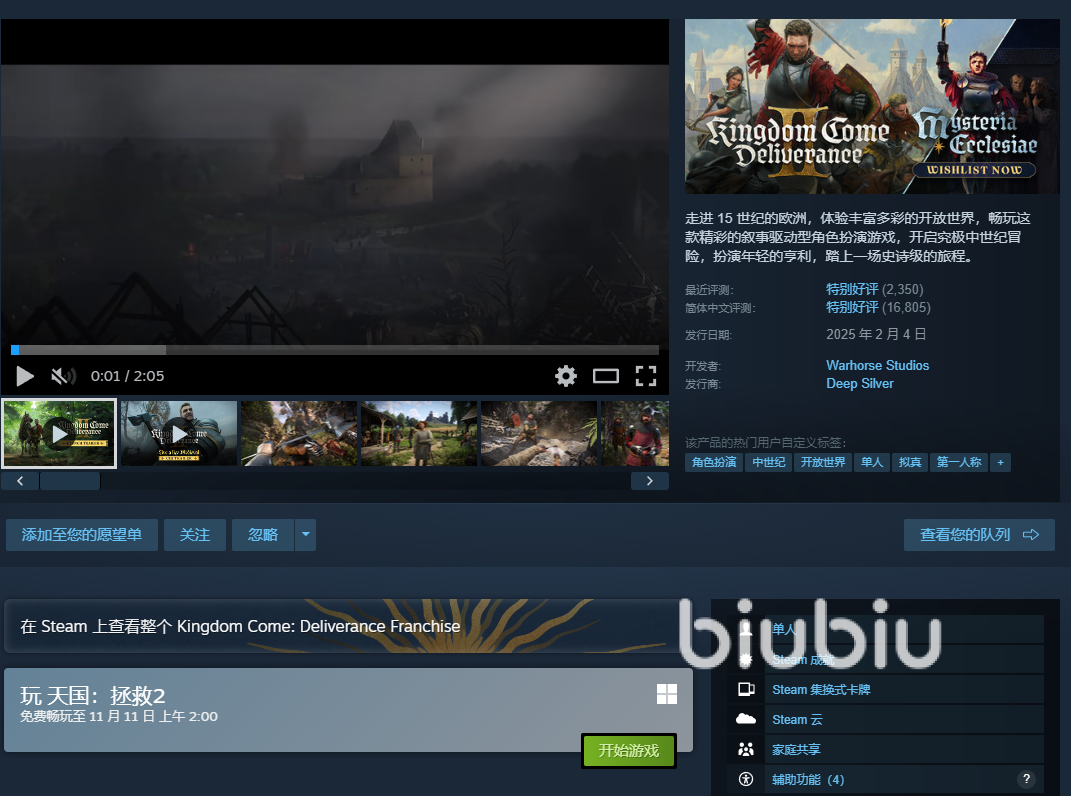 天国拯救2限时免费游玩时间有吗 天国拯救2限时免费游玩活动分享