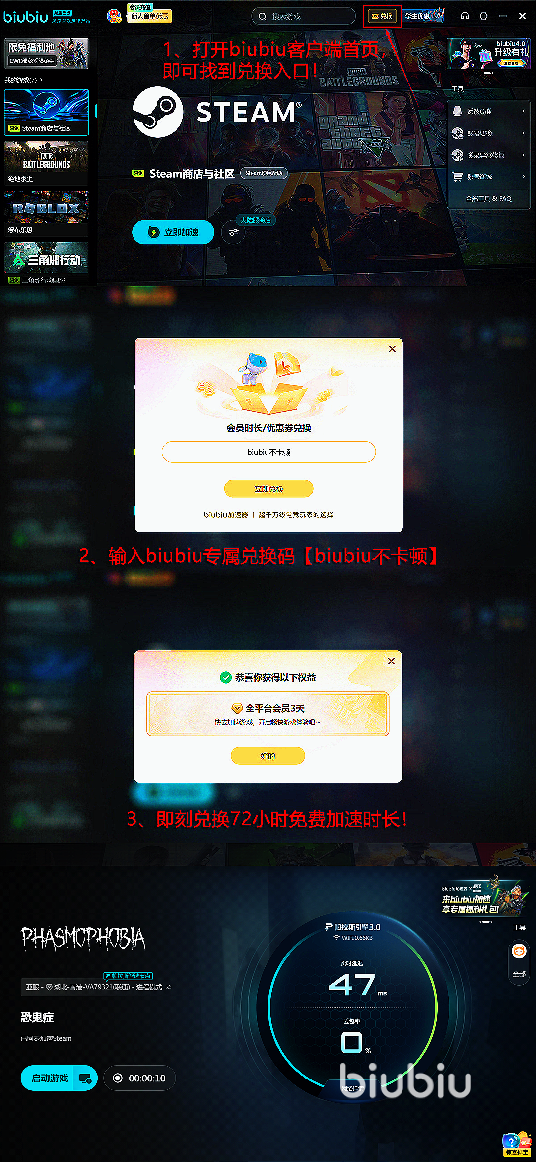 有些玩家会喜欢跟国外玩家进行匹配,但国际服游玩有一个弊端就是容易卡顿的,高延迟会导致互动延迟,那么就可以使用biubiu加速器,能有效降低跨区域网络延迟。而且新手玩家在首次充值的时候还可以获得额外的优惠,充值金额越多优惠力度越大。同时biubiu新老用户使用兑换码【biubiu不卡顿】可获3天免费的使用权哦,而且新人在注册后便获24小时免费加速,轻松解决网络问题。