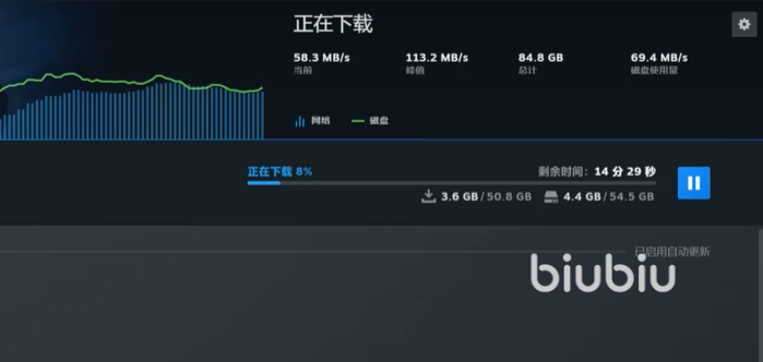 针对大型游戏,数据的解压是尤为重要的,如果硬件水平不过关,运算速率低会出现下载慢的情况。但是这款重制游戏,配置需求并不高,内存容量也仅需要10G左右,如果还出现各种下载缓慢,或者进度暂停的情况,唯一的可能性就是因为网络卡顿的。再结合一下发售平台,很多人都用的是steam,直连本来就容易出现各种卡顿或者断连的情况,在此下载出现故障是很正常的事情。要解决也是有对应方案的,就是用上biubiu加速器。