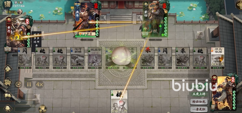 第二个技能“百步穿杨”是一项强力的进攻手段。发动后可立即对指定目标使用一张【杀】,且该次攻击具有强制命中效果,目标无法通过常规方式闪避,极大地提升了输出稳定性。