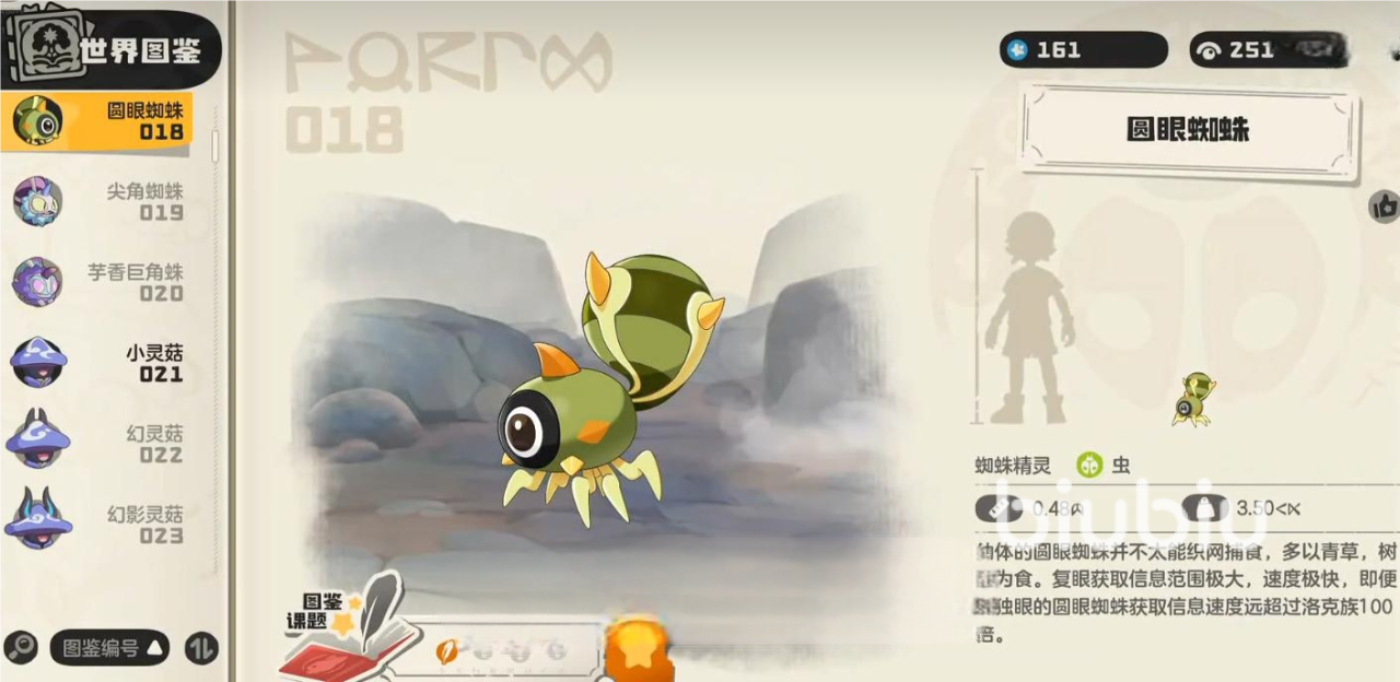 想要获得芋头香巨角蛛,首先需要捕捉它的初始形态——圆眼蜘蛛。这种精灵在游戏中分布较广,但由于体型较小,容易被玩家忽略。建议前往护住犬所在区域的后方草地进行寻找,此处为圆眼蜘蛛的主要刷新点,耐心蹲守即可成功捕获。