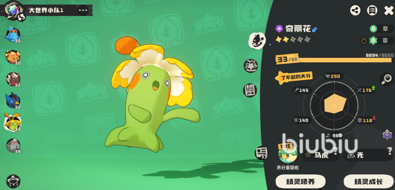 想要构建这套体系,核心精灵是拥有首领血脉的奇丽花。玩家可通过火神或音速犬挑战首领奇丽花,获得携带血脉的蛋进行孵化培养;另一种方式是放生十只具备血脉的奇丽花,换取后天改造道具。若已捕获天赋优异的个体,推荐选择后者,能大幅缩短养成周期,提升效率。