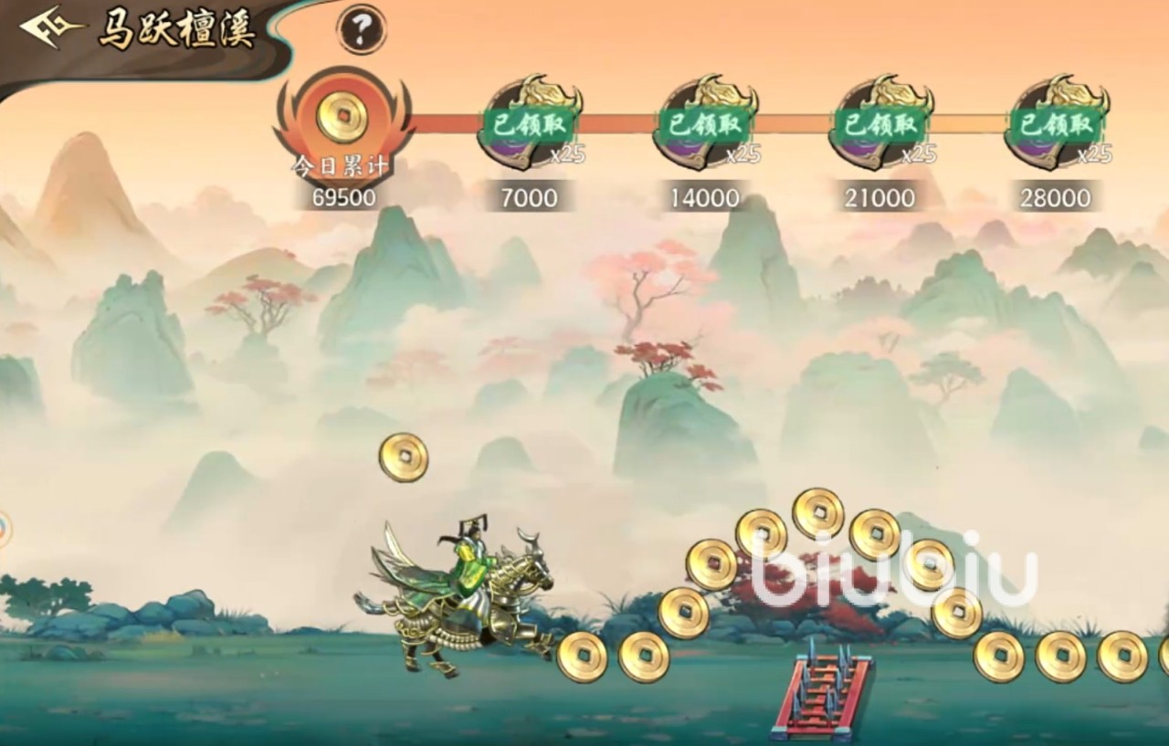 此外,百战群英还设计了多种非战斗性质的休闲副本,目前共包含四种趣味小游戏:草船借箭、许田围猎、犒赏三军以及马跃檀溪。草船借箭考验躲避能力,许田围猎注重捕捉节奏,犒赏三军要求合理控制武将进食速度,而马跃檀溪则采用跑酷机制,玩家需操控角色跳跃障碍并收集铜币。这些玩法虽轻松,但同样能产出荣耀货币,可用于荣耀商铺兑换所需物品。