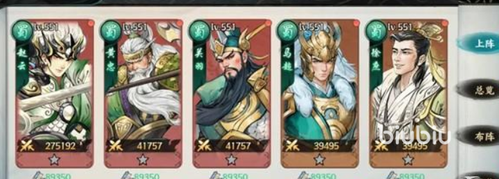 此外,也可对阵容进行灵活调整,例如将郭嘉替换为具备治疗能力的真机,提升队伍续航;或选用典韦增强前排反击强度。另一主流选择为蜀国五虎将体系,该阵容以关羽为主要控制与输出点,配合张飞持续造成高额物理伤害。刘备作为治疗支援角色,其仁德技能可提供团队增益与回复支持,而诸葛亮则凭借八阵图实现范围控制,有效压制敌方后排行动。
