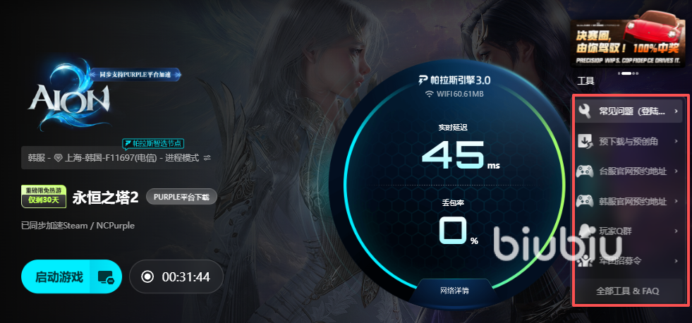 有的小伙伴或许会疑惑,加速器怎么帮助大家下载提供下载教程呢?其实是因为在biubiu内,永恒之塔二的提速专区是有相关工具服务的,大家只需要在平台内搜索该游戏名称,找到对应专区,点击进入之后,就可以将鼠标移至右侧工具栏,会自动弹出相关的服务功能,包括预下载和创角色,还有台服和韩服的官网地址,若是担心信息匮乏,还可加入玩家群,找到和自己一起游玩的小伙伴。