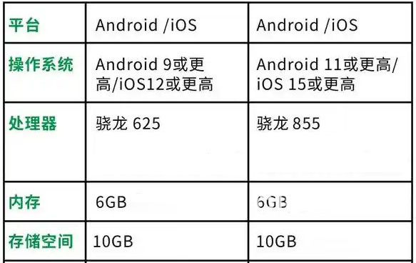 对于手机游戏来说,主要考虑是两方面的配置,一个是iOS配置,一个是安卓系统,相对来说iOS非常简单,只要达到iso15.0及以上基本上可以流畅的玩游戏,游戏安装包有2GB大小,安装完之后还会有一些更新内容需要更新,因此预留至少10GB空间给游戏就足以。安卓的配置要求会更加复杂,不追求极致画面要求,只要能玩的话,骁龙625搭配4GB内存的话基本上可以确保游戏的运行,但不保证能稳定。如要保证基本的运行,处理器提升到骁龙712即可,能保证稳定流畅的运行,如果想要画面质量更高,可开启更多的特效,处理器则需要达到骁龙855及同等配置水平,内存则需要在6GB及以上,可获得丝滑效果,如果配置到8Gen1及以上的则可以畅快画质,特效全开的模式,游戏存储空间要保证最少10GB以上。