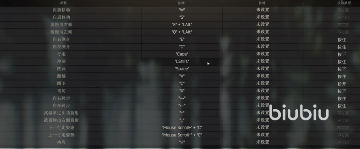 基础的键位设置非常简单,使用WASD可以实现上下左右方向的移动,空格是跳跃,c为蹲伏,想要急停或者静步走,使用Capslock就行了,在快速跑图或者靠近对手的时候,可以用shift+w进行奔跑。