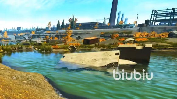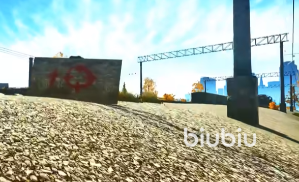 在地图东边走找到一个绿色卡车,右边铁皮墙上写了一个大的stop,从缝隙中穿过去,沿着马路直走,看到一个油罐车就对了,一直走到尽头,这是一个点位。