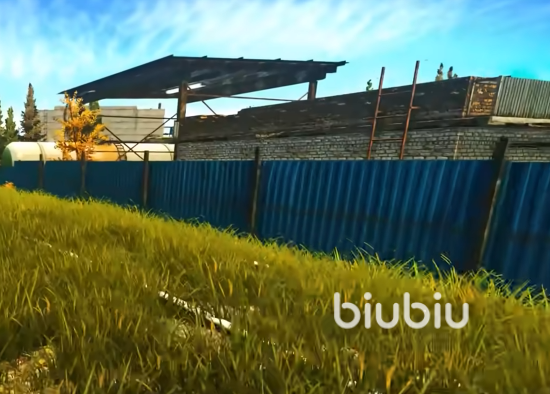 然后沿着围墙走,前往十七号仓库,来到内部区域,中间有个高楼,边上有4个厕所,这块区域比较大,是一个信号撤离点,推荐各位再往上走一走,靠近铁路的地方能够看到有个牌子,上面有红色涂鸦,这里是范围边缘,注意别超过。
