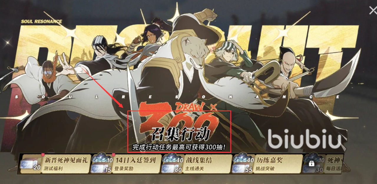 第一种方式是通过抽卡系统获得角色。游戏中设有新手卡池、普通卡池和限定卡池。其中,新手卡池对新人玩家尤为友好,进行60次抽取必定获得一名SSR级别的角色,且每次抽卡享受八折优惠。此外,在开服期间参与“征召行动”任务,可领取新晋死神见面礼与连续14天的签到奖励,完成战线集结与历练嘉奖后还能额外获取抽卡机会。